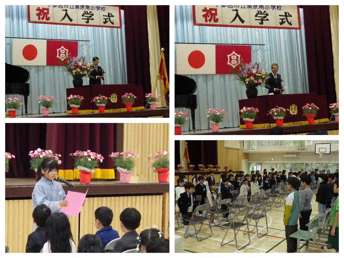昨年より早い春の訪れに、校庭の桜は若葉芽吹く季節へと移ろいを見せています。69名の新入生の皆さん、ご入学おめでとうございます。清原南小学校の先生方や、二年生から六年生のお兄さんお姉さんたちは、皆さんが入学することをとても楽しみにしていました。これから楽しい小学校生活が始まりますので、毎朝、ランドセルを背負って元気に、そして、安全に気を付けて学校に来て下さい。