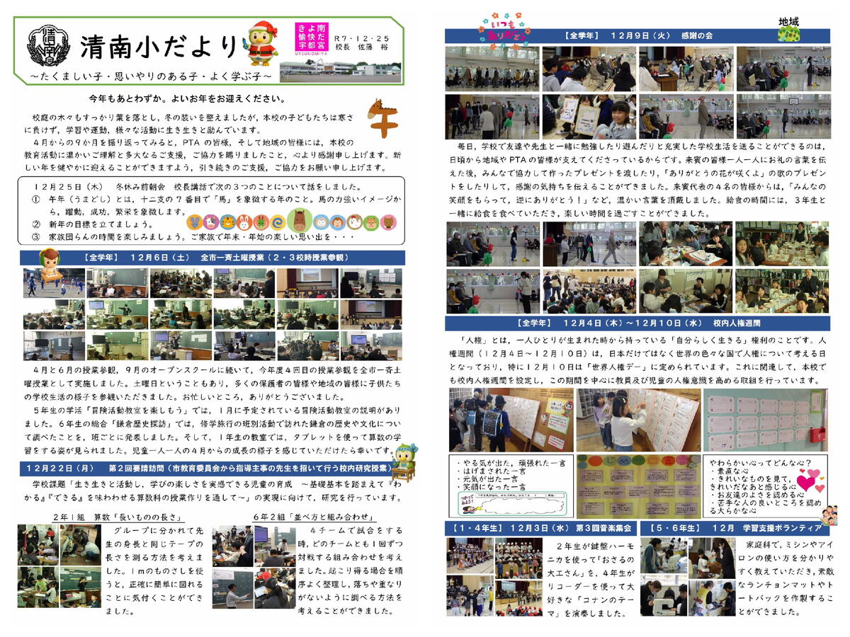 学校だより12月号 良いお年をお迎えください。