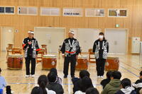 今年度は、和太鼓の体験を行いました。児童は生の演奏に心を打たれ、興味津々!