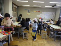様々な昔遊び(こままわし,羽根つき,ヨーヨー,めんこ,けん玉,ビー玉,おはじき,あやとり,だるま落とし,お手玉)をグループごとに回りながら,楽しみました。