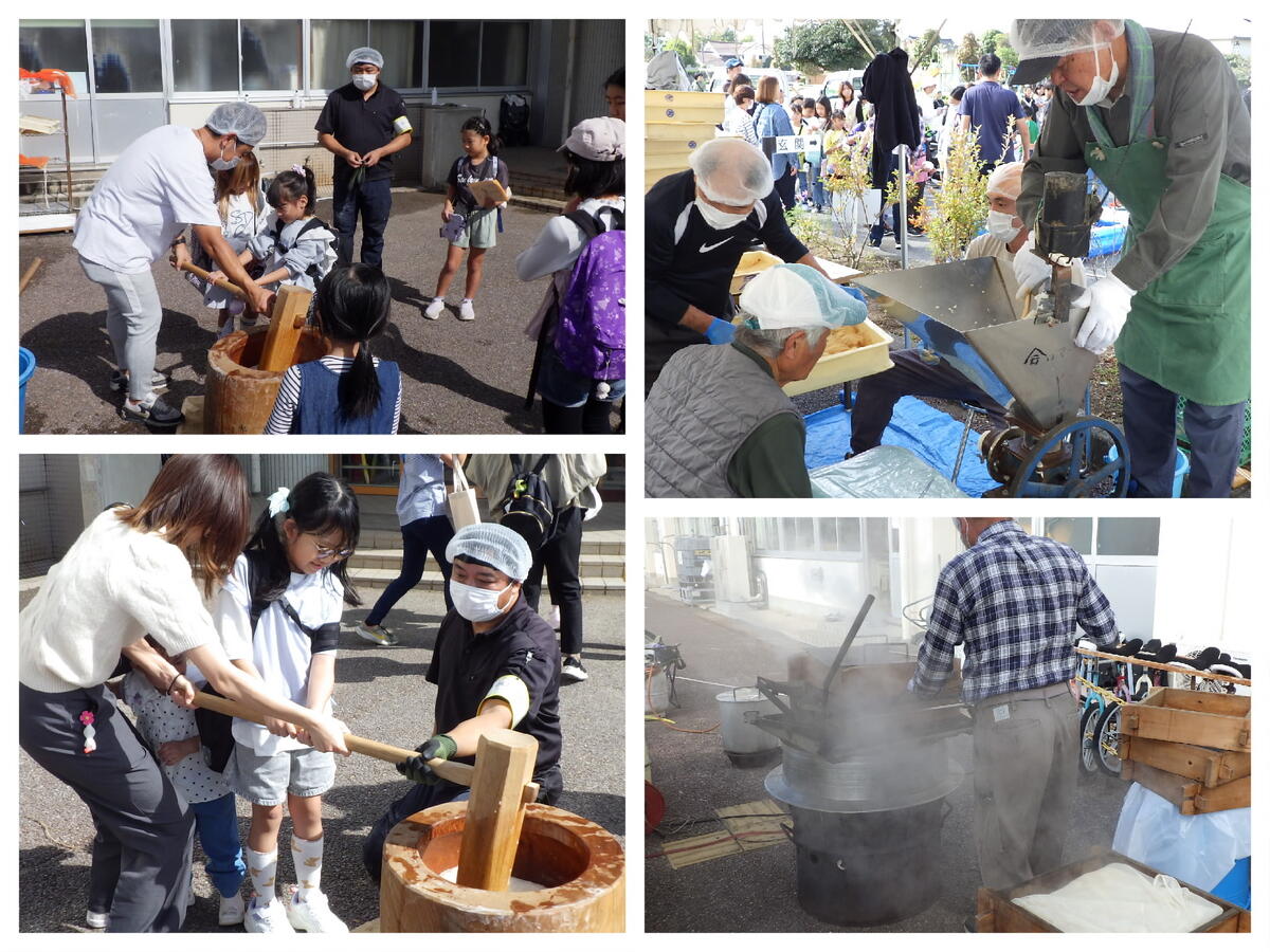 10月18日(土)に、PTAによる「清南まつり」が実施されました。5年生が稲刈りをしたもち米を使って、臼と杵でお餅をついて販売しました。子供たちの体験餅つきも行いました。また、エンジョイミュージックの発表・スーパーボールすくい・スタンプラリー・重さあてゲーム・ボール運び・わなげ・空き缶当てゲーム・手芸品、洋菓子販売、ペープサート・ヨーヨー釣り・キッチンカー・チェルキオの発表など多くの催し物に、たくさんの子供たちや保護者の笑顔が見られました。運営にご協力いただいたPTA及び地域の皆様、ありがとうございました。