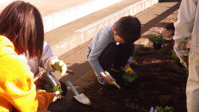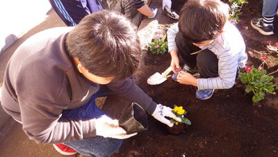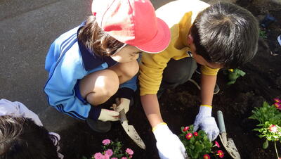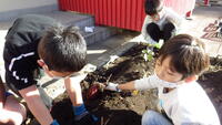 始めは「難しい~」と苦戦していたポリポットを取る作業も,だんだん慣れてきてコツを友達と伝えあっていました。