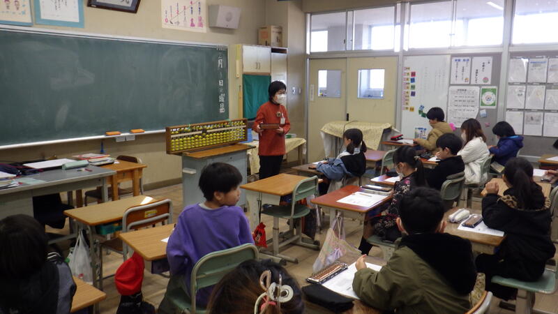 珠算教室では、初めてのそろばんに難しさを感じながらも、一生懸命取り組んでいました。