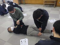 消防署の方々から、救命救急の最大の目的は「社会復帰」であること、そのために、その場に居合わせたら、①呼びかけをすること②119番通報すること③心臓マッサージ+AEDの手順で行うこと、呼吸が止まった瞬間に「命のストップウォッチ」が押されるので、「勇気」をもって行動してほしいというお話がありました。