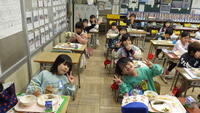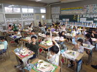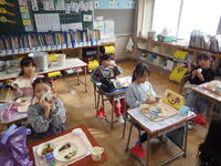 本日はおにぎりの日。ご協力ありがとうございました。児童はとっておきのおにぎりを持ち寄って,笑顔で食べていました。自分で作ってもお家の人に作ってもらっても嬉しいおにぎり…。一気に食べてしまうのがもったいなくて,「最後のおにぎりはデザートに食べよう!」,「先生,(もったいなくて)食べれません」など可愛らしい言葉が聞こえてきました。