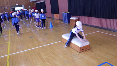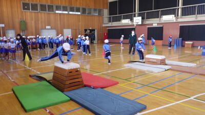 2年 12月23日 体育 「跳び箱」 投稿日時 : 2025/12/24 晃宝小学校 2年生全体で,跳び箱の授業をしました。みんなで楽しく活動することができました。 跳び箱の発表会もして,自分の成長を感じました。 {{options.likeCount}} {{options.likeCount}}