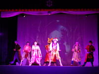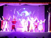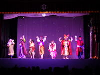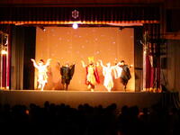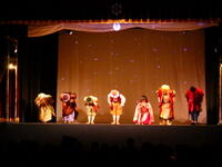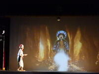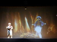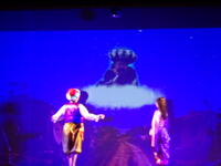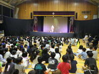 劇団ポプラの皆さんをお招きして芸術鑑賞教室を行いました。演目は「アラジン」でした。ミュージカル(3次元)と映像(2次元)が融合したもので、舞台に映し出される魔人の映像とアラジンのコミカルなやり取りやアラビアの風景、ジャスミンを探しに行く場面での児童を巻き込んだ経路の選択など児童は開幕から舞台に引き込まれていました。ダンスや歌の場面では自然と手拍子が沸き起こっていました。とても貴重な体験ができました。