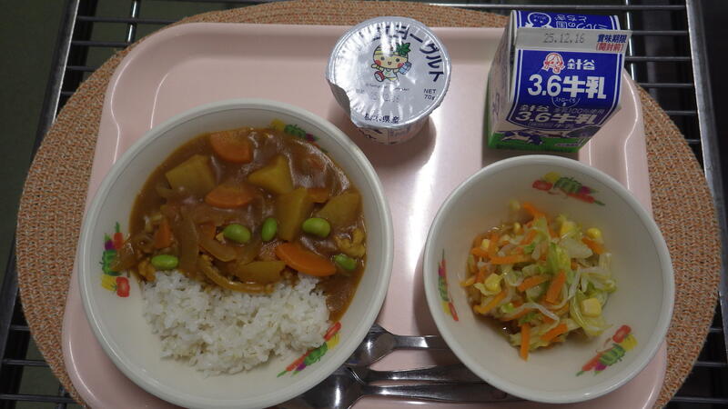一覧へ 今日の給食 日時 2025年12月05日(金) 公開対象 パブリック 詳細 献立:麦入りごはん チキンカレー 牛乳 ゆでやさい ヨーグルト 宇都宮市産:米 栃木県産:牛乳 ヨーグルト キャベツ 人参 もやし 作成者 晃宝小学校 更新日時 2025-12-11 14:13:50