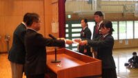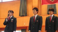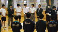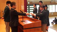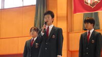 後期生徒会執行部任命式では,学校長より生徒会長はじめ役員一人一人に任命書が手渡され,その後に生徒会長より「公約を果たして責任を全うし,よりよい晃陽中学校をつくっていきたい」との抱負が語られました。