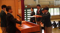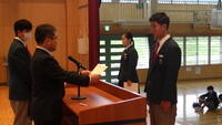 10月22日(水)に標記朝会が行われ,学校長から生徒会各専門員長に任命書が手渡されました。その後で,各専門員長から,委員会活動方針や抱負,全校生徒への協力依頼等が発表されました。後期も,前期同様に生徒が自主的に活動し,活躍することを期待しています。