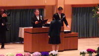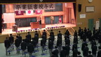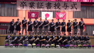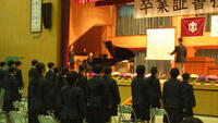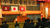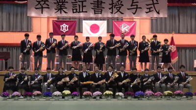 はじめに学校長より44名の卒業生一人一人に卒業証書が手渡されました。その後,学校長より「自分が納得のいく人生を歩む」ことの式辞をはじめとして,多くの方々から温かいお言葉をいただきました。そして,在校生による送辞,卒業生による答辞が述べられ,最後に全校生徒,教職員による式歌,校歌が会場に響き,感動の渦に包まれました。