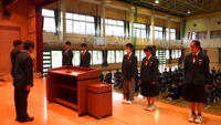 後期生徒会執行部任命式では,学校長より生徒会長はじめ役員一人一人に任命書が手渡され,その後に生徒会長より「公約を果たして責任を全うし,よりよい晃陽中学校をつくっていきたい」との抱負が語られました。