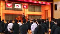 2月5日(水)朝に全校朝会を実施しました。まず初めに,河内地区理科展覧会入賞及び全国小・中学生障がい福祉ふれあいコンクール学校・団体賞の表彰を行ないました。その後で,学校長より「なぜ学ぶのか」についての講話があり,さらに担当職員から生活や通学路について話がありました。生徒の皆さんは真剣に話を聞き,自分を振り返る時間にできました。
