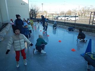 今年も校舎北側にあるスケートリンクでのスケート体験がスタートしました。PTAの担当の方々が,毎晩,遅い時間帯に水撒きを続けてくださり,今年も立派なスケートリンクが完成しました。初日は4年生が滑りました。緊張をしていた子供たちも次第に慣れきて,楽しそうに滑る様子がたくさん見られました。気温にもよりますが,2月10日ごろまで実施する予定です。