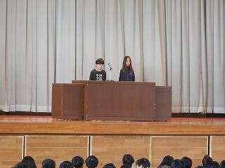 本来は体育館に全員が集まって行う予定でしたが,インフルエンザの感染拡大予防対策としてオンラインで行いました。代表委員の4,5年生が児童会室で進行・配信し,6年生の成長が分かるフォトムービーを視聴したり,歌のプレゼントを全校児童で歌ったりして,心のこもった会にすることができました。