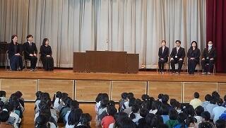 新しく7名の職員が着任し,新年度が始まりました。着任式では,新任の先生方の挨拶の後,6年生の山口さんが児童代表お迎えのことばを堂々と述べました。始業式では,6年生の千坂さんが今年度の抱負を立派に述べ,学校長からは今年度に頑張ってほしいことについての話がありました。担任発表並びに職員紹介では,発表するたびに拍手や歓声が沸くなど,とても和やかな雰囲気の新年度スタートになりました。