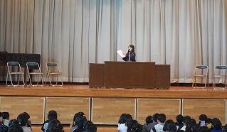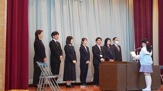 本来は体育館に全員が集まって行う予定でしたが,インフルエンザの感染拡大予防対策としてオンラインで行いました。代表委員の4,5年生が児童会室で進行・配信し,6年生の成長が分かるフォトムービーを視聴したり,歌のプレゼントを全校児童で歌ったりして,心のこもった会にすることができました。