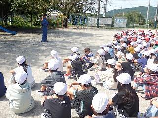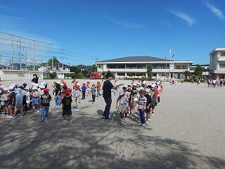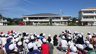 今回の避難訓練は,地震により給食室から火災が発生したことを想定した訓練を行いました。子供たちは皆,真剣に訓練に取り組み,スムーズに避難することができました。今回は,宇都宮市西消防署宝木分署の方々にご協力いただき,水消火器を用いた消火器の使い方について学習しました。代表児童が実際に水消火器を使って訓練を行い,それを全校児童が見学しました。不意の災害の際にも慌てることなく,落ち着いて状況を正しく判断し,命を守るための行動を取ることができるよう,今後も指導を継続していきたいと思います。