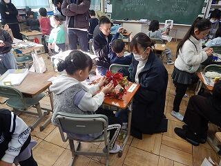 「うつのみやオープンスクール」として2~3校時を公開し,保護者の皆様や地域の方々に子供たちの学習や生活の様子を参観していただきました。通常の授業のほか,親子でリース作りをしたり,お祭りをしたり,冒険活動教室の説明会を行ったりするなど,親子での活動も行いました。たくさんの方々に来校していただき,子供たちはとても張り切って学習に取り組んでいました。