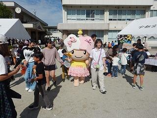 PTA主催の「国央小まつり」が晴天の下で盛大に開催されました。この行事は収穫祭として行われ,本校の農業体験学習で収穫したお米で作った「おこわ」を子供たちに配付したり,一般に販売したりします。イベントでは,疾風太鼓による太鼓演奏,国央小ソーランクラブによるソーラン演舞,国本空手部による演武のほか,模擬店やレクリエーションが行われました。会場にはミヤリーちゃんも登場し,とても賑やかな行事になりました。
