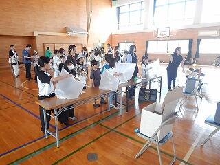 集会委員会が計画した「なかよし集会」が行われました。全校児童が体育館に集まり「おちた おちた」や「伝言ゲーム」を行いました。縦割り班での活動では,上級生が下級生に対して優しくサポートする様子が見られ,とても楽しい時間になりました。