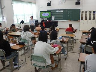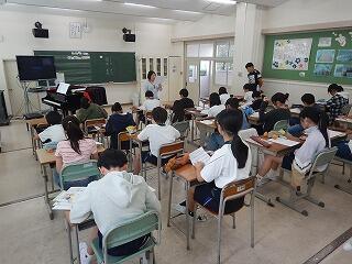 国本地域学校園の交流連携事業として,国本中学校の菊地先生にお越しいただき,6年生を対象に音楽科の授業を行っていただきました。乗り入れ授業を通して,中学校の学習や生活への期待がますます高まったようです。