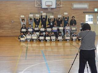 「こどもたちの笑顔写真」で作るモザイクアートを,打ち上げロケットに搭載し国際宇宙ステーションへ届ける企画「こども宇宙プロジェクト」に参加しました。子供たちが書いたメッセージカードを掲げて,全学年が学級ごとに写真撮影を行いました。