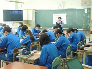12月16日(火)5時間目、市教委から指導主事をお迎えし、理科の研究授業を行いました。音による現象という単元で、音の大小や高低の違いについて学びました。生徒はギターを使った実験に熱心に取り組んでいました。
