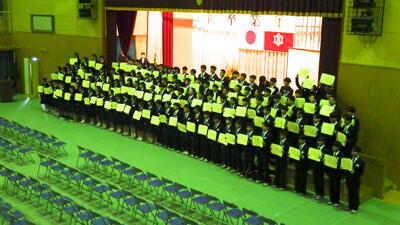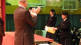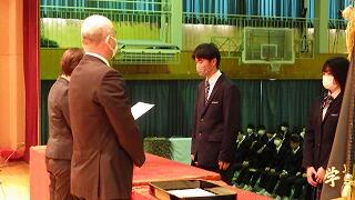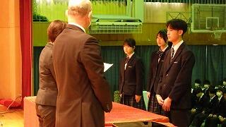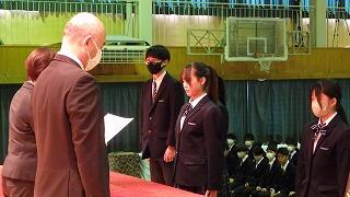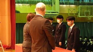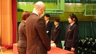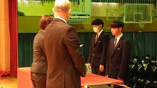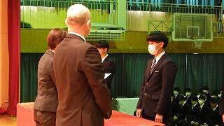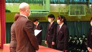 また、表彰式を行い、延べ28名の生徒へ直接賞状を手渡しました。受賞された3年生の皆さんおめでとうございます。