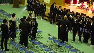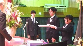 3月9日(月)、同窓会入会式及び表彰式を行いました。同窓会入会式では、同窓会副会長様から卒業生に向けて式辞をいただきました。今後、同窓会の一員として、「母校を愛する気持ち」で中学校を支えてほしいと思います。