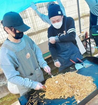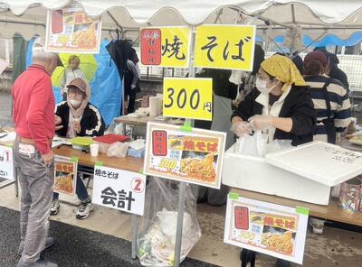 農業祭では、国本中・国本中央小・国本西小・晃宝小のPTA有志による模擬店が出店。 雨にも負けず、焼きそば699食はあっという間に完売しました。