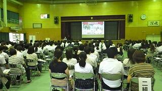 10月2日(木)私立高等学校保護者説明会を体育館で行いました。私立高等学校の進路担当の先生方から直接お話をうかがうことのできる貴重な機会とあって、生徒は真剣に耳を傾けていました。