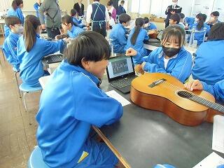 12月16日(火)5時間目、市教委から指導主事をお迎えし、理科の研究授業を行いました。音による現象という単元で、音の大小や高低の違いについて学びました。生徒はギターを使った実験に熱心に取り組んでいました。