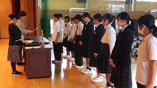10月10日(金)表彰式及び任命式を行い、その後1学期終業式を行いました。