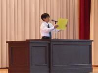 1学期終業式では、各学年の代表からの意見発表がありました。一学期を振り返り、自分自身が成長できたことを実感するとともに、さらに努力していきたいと力強く堂々と発表していました。2学期もそれぞれの目標に向かい、努力することを応援しています。