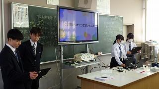 1月14日(水)、市教委から指導主事をお迎えし、音楽科の研究授業を行いました。「作詞者・作曲家の想いを捉え、想いを伝える工夫を考えよう」というねらいの鑑賞の授業でした。拍子や音の強弱などを考え、自分なりの表現の仕方を個人やペア学習で考えていく内容でした。ICTを活用しながら、生徒は意欲的に取り組んでいました。
