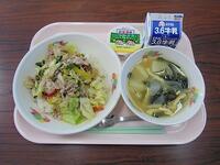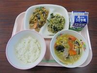 月曜日は東京都渋谷区の「元気もりもり丼・味噌汁・給食週間はちみつゼリー」、火曜日は北海道献立で「麦入りご飯・鮭のちゃんちゃん焼き・からしあえ・道産子汁」、水曜日は沖縄県うるま市の「麦入りご飯・セルフタコライス・もずくスープ・シークワーサーゼリー」、木曜日は愛知県献立で「鶏ご飯・鶏肉の味噌漬け焼き・磯辺和え・すまし汁」、金曜日は宮っ子ランチ、黄ぶなにちなんで健康になろう献立で「麦入りご飯・里芋のコロッケ・もやしとにらのごまあえ・かんぴょうの卵とじ」でした。各地の名産が盛りだくさんのメニューで、楽しく、おいしくいただきました。