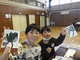 ・収穫したサツマイモと大根を題材に絵手紙を作成。個性あふれる味のある作品が完成しました。