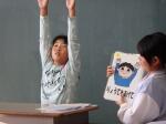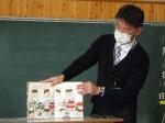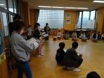 4年生が3年生に宗円獅子舞について教えてくれました。獅子舞の歴史や頭,服装についてクイズを交えながら楽しく教えてくれました。3年生は来年度自分たちが伝統を引き継いでいくのだと,やる気に満ち溢れていました。