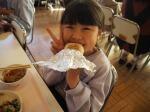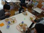 そして、給食の時間には、「JA共済の地域環境貢献活動」の一貫としていただいた3Lサイズのイチゴをおいしく食べました!みんなで、大地の恵みに感謝し、大事に大事に食べました。