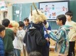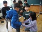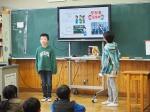 4年生が3年生に宗円獅子舞について教えてくれました。獅子舞の歴史や頭,服装についてクイズを交えながら楽しく教えてくれました。3年生は来年度自分たちが伝統を引き継いでいくのだと,やる気に満ち溢れていました。