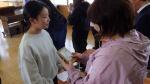 ふれあい文化教室で書道を教えていただきました。大きな水書用紙にお手本を書いていただいたり,実際に書いたりしました。そのあと自分で選んだ漢字1字を半紙に書きました。先生方に添削をしていただきながら素敵な一文字が書けました。