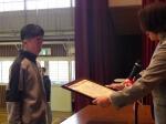 表彰がありました。教育長奨励賞や書道,図画,図書,剣道などの表彰があり,立派な態度で賞状をもらっていました。