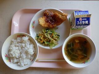 麦入りご飯・牛乳・チキンカツ(味噌カツソース)