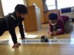 プログラミングソフトを使い,ロボットカーを命令通りに走らせました。