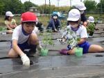 毎年恒例の田植えが行われました。地域の方々のおかげで今年も田植えをすることができました。子どもたちはひんやりとした泥の感触を楽しみながら,一生懸命田植えをすることができました。収穫できる日が楽しみです。参加してくださった保護者の皆様,ありがとうございました。