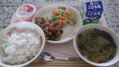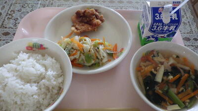 今日の一番人気は、ケチャップ和えです。一口サイズのジャガイモ、玉ねぎ、人参、ピーマン、鶏肉が食べやすかったです。残食も少なく、完食できた子供たちが、たくさんいました。