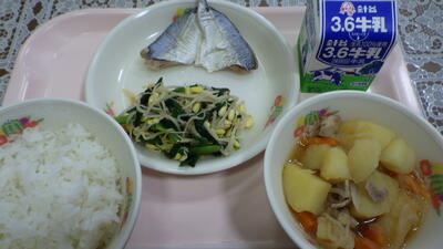 給食は、栄養バランスがよいだけでなく、温かい料理を温かいうちに食べることができるのも1つのよさです。ほくほくのジャガイモが、とってもおいしかったです!