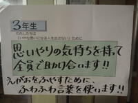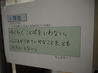 9月はいじめゼロ月間です。各クラスでいじめゼロ宣言を考え、教室のドアに貼ってあります。今週の生活目標は「クラスの宣言を意識してきちんと守ろう」です。各クラスで作った宣言を意識して生活しています。