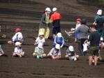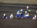 9月25日(月)の5時間目に全校児童で大根と株の種まき,白菜の苗植えをしました。